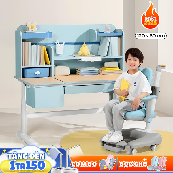 Bàn học chống gù chống cận FANCY H120 là phiên bản mới của năm 2025 với một thiết kế ưu việt hỗ trợ chống gù chống cận hiệu quả công nghệ đến từ ĐỨC, bàn học cho trẻ FANCY H120 được nâng cấp với các học tủ và kệ rộng rãi giúp bé nhà ta có thể thỏa sức đựng các dụng cụ học tập và giải trái ngay trên chiếc bàn thân yêu của mình.