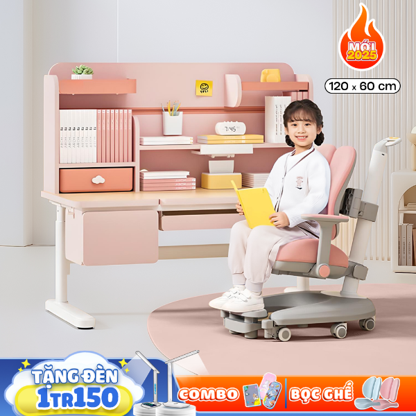 Bàn học chống gù chống cận FANCY H120 là phiên bản mới của năm 2025 với một thiết kế ưu việt hỗ trợ chống gù chống cận hiệu quả công nghệ đến từ ĐỨC, bàn học cho trẻ FANCY H120 được nâng cấp với các học tủ và kệ rộng rãi giúp bé nhà ta có thể thỏa sức đựng các dụng cụ học tập và giải trái ngay trên chiếc bàn thân yêu của mình.