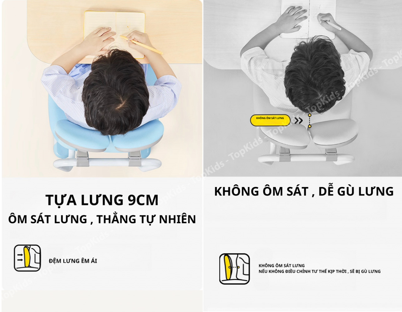 Ghế chống gù: tựa lưng là trục đúc dày nên hạn chế bị sứt tai ghế như các dòng thường nhựa mỏng.