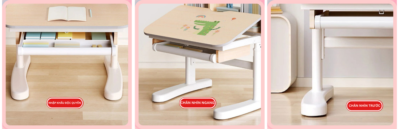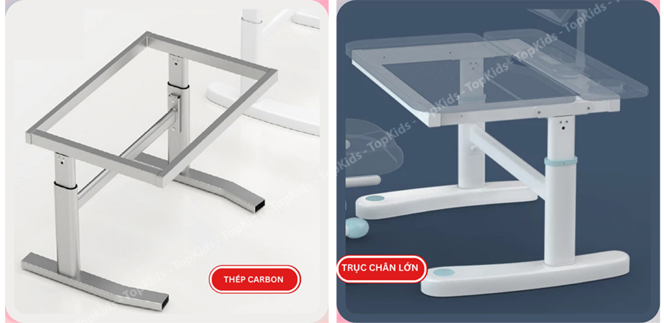 Chân bàn: To dày (chấm màu xanh/hồng) =>độ hoàn thiện của sản phẩm cao.