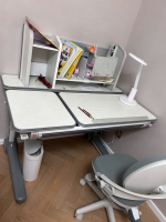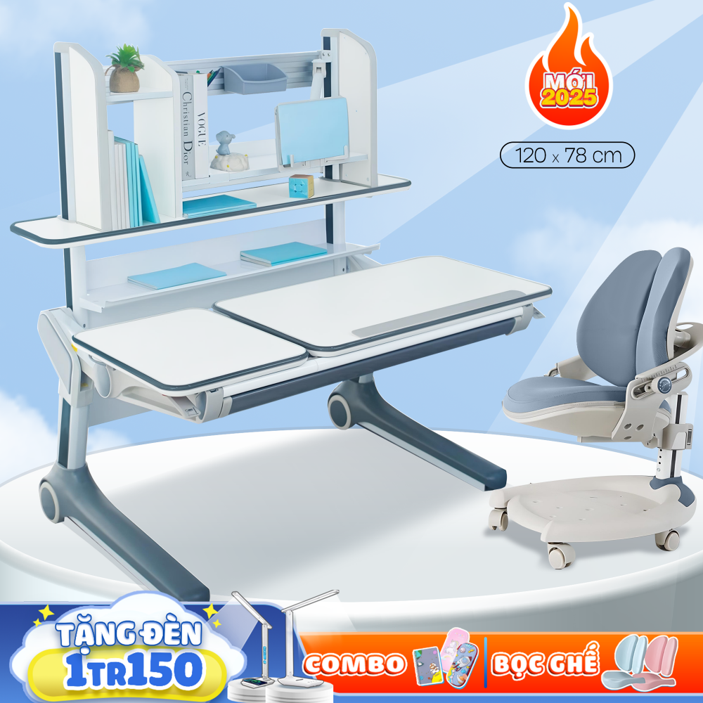 Mặt bàn nghiêng hỗ trợ viết, đọc, vẽ, trong khi mặt bàn cố định đựng sách vở và dụng cụ học tập. Đặc biệt, mặt bàn dày 25mm,