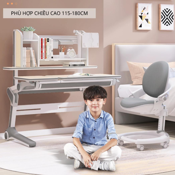 gian học tập của bé. Với kiểu dáng sang trọng và mặt bàn được phủ matte chống lóa, nó tạo nên môi trường học tập thú vị và đẹp mắt.
