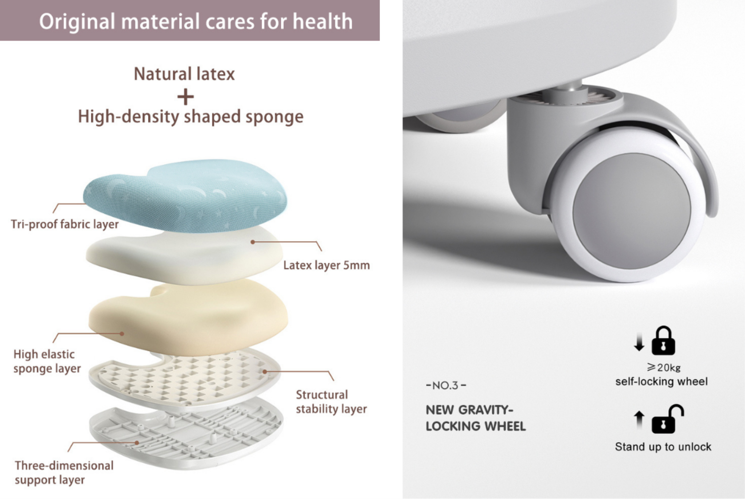 Ghế cao cấp có bánh xe phanh trọng lực.